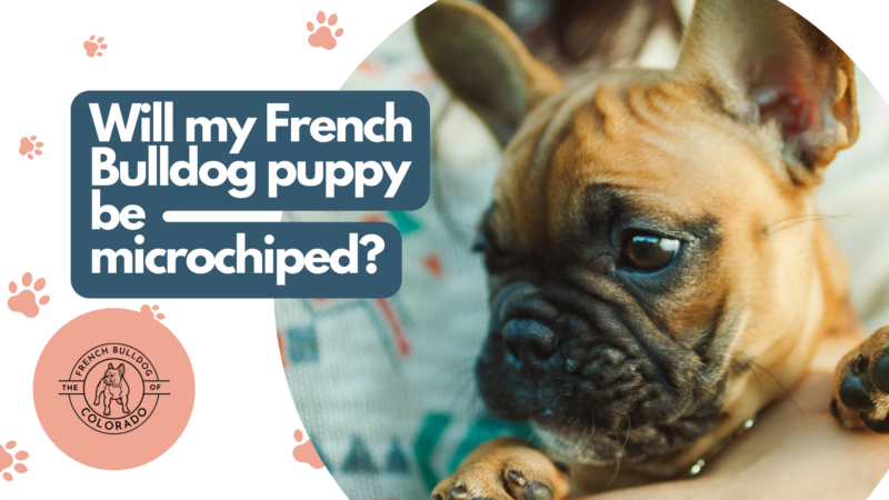 Many of our Frenchie families as, “Will my French Bulldog puppy be microchipped?” Every single one of our puppies will be microchipped before coming to live with you. You will notice your puppy is named on our website and is accompanied by a 4 digit number. This number is the last four digits of the microchip. A microchip is the size of a grain of rice that is inserted under the skin in the region of the lower neck and upper back. If your Frenchie is lost, someone could scan that area and return your baby back to you.