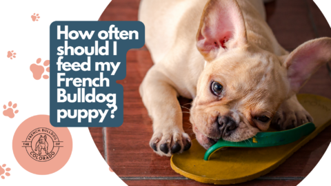 One of the questions we get at pick up is how often should I feed my French Bulldog puppy? Your puppy has been on unlimited food all of the time. When you bring your puppy to your home you will want to place him/her on a schedule of 3-4 times per day. If on the smaller side (5lbs), we recommend four times per day. If a little bit stouter, you can start with three times a day. We recommend giving them as much as they want at each setting while they are growing babies. As they age and grow you can take it down to 1-2 times per day. Two feedings per day seems to be the amount of times most people end up feeding their Frenchies.